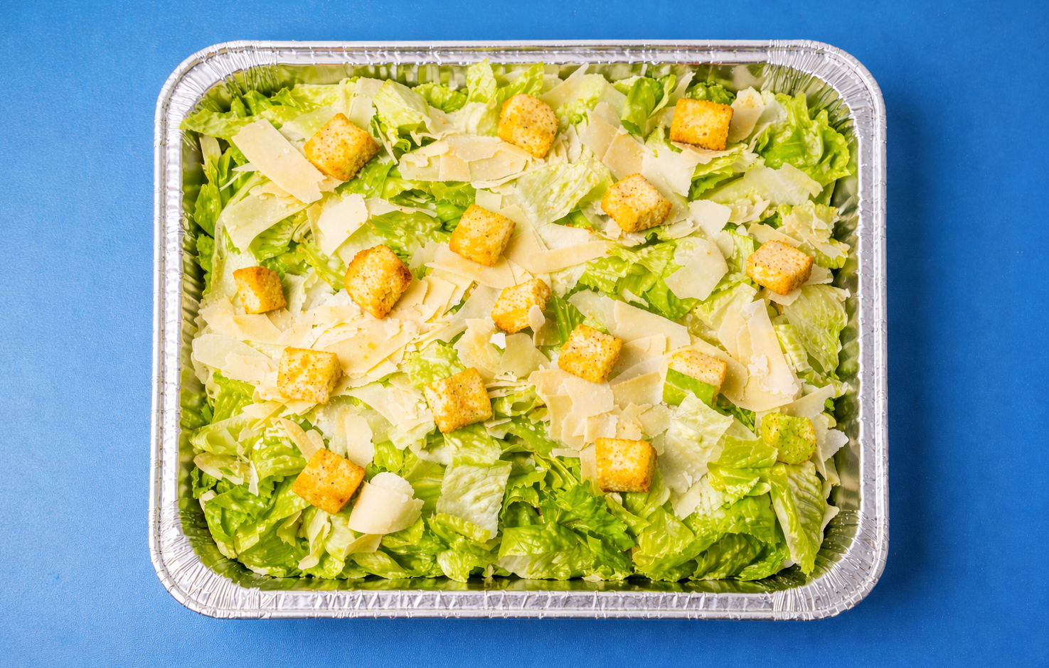 Crisp romaine lettuce topped with shaved Parmigiano-Reggiano and garlic butter croutons. Comes with a side of Caesar dressing.